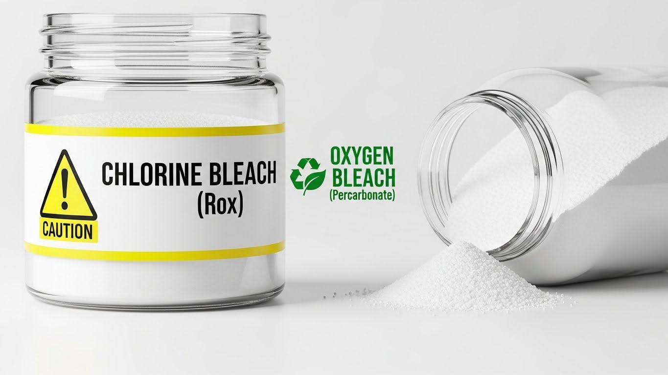 많은 분들이 "하얗게 하려면 락스 담그면 되지 않나요?"라고 묻습니다. 하지만 락스(염소계)는 옷감을 상하게 하고, 자칫 잘못하면 옷이 오히려 붉게 변하거나 구멍이 날 수 있습니다.