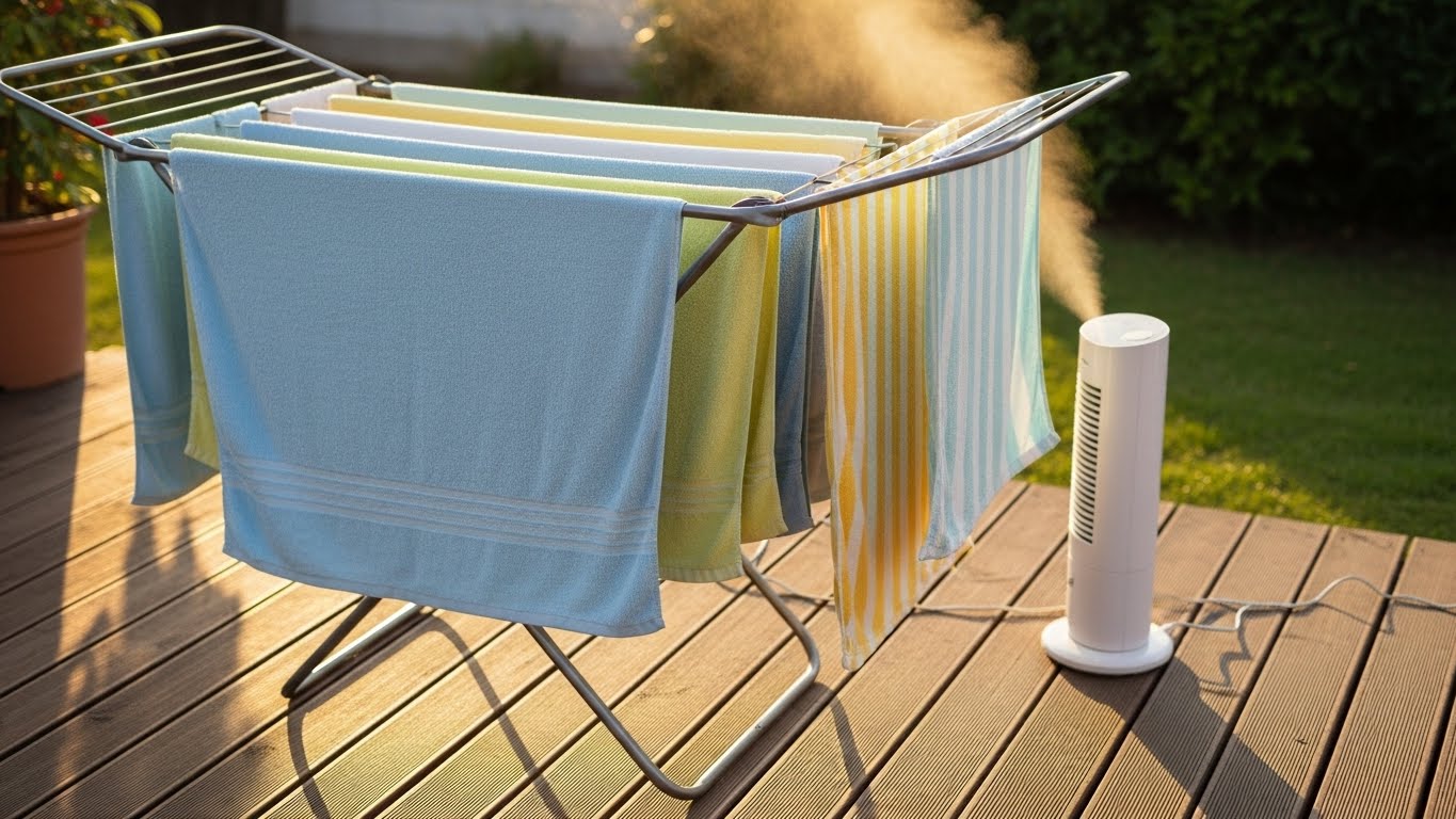 - 간격 유지: 건조대에 널 때 수건과 수건 사이를 넓게 띄우거나, 한 칸씩 건너뛰어 널어야 합니다. 선풍기나 제습기를 틀어 건조 시간을 단축하는 것이 핵심입니다. (건조기가 있다면 최고!)