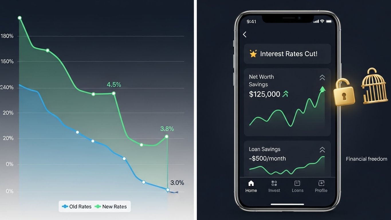 은행과의 협상을 통해 대출 금리 인하 권리를 행사하는 경제적 이미지