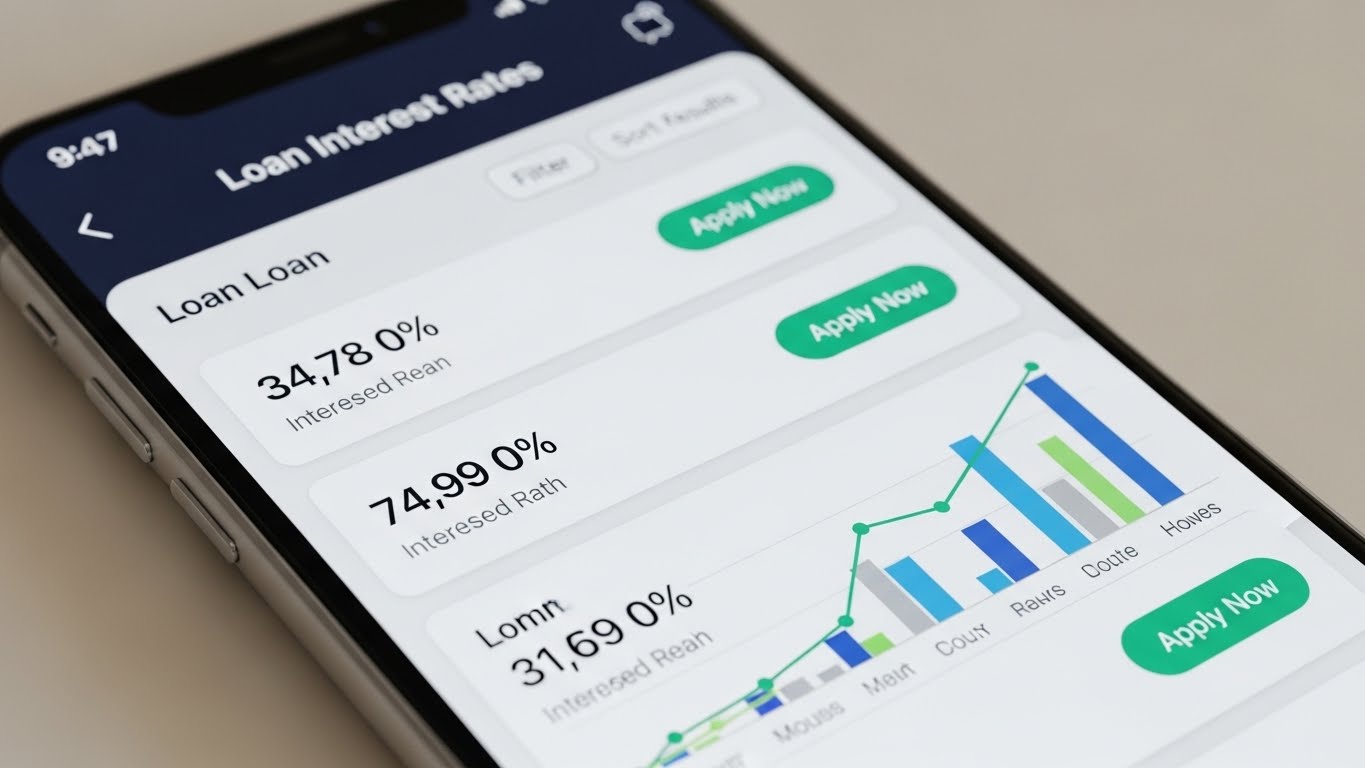 스마트폰 금융 플랫폼에서 대환대출 조건을 실시간으로 비교 분석하는 모습
