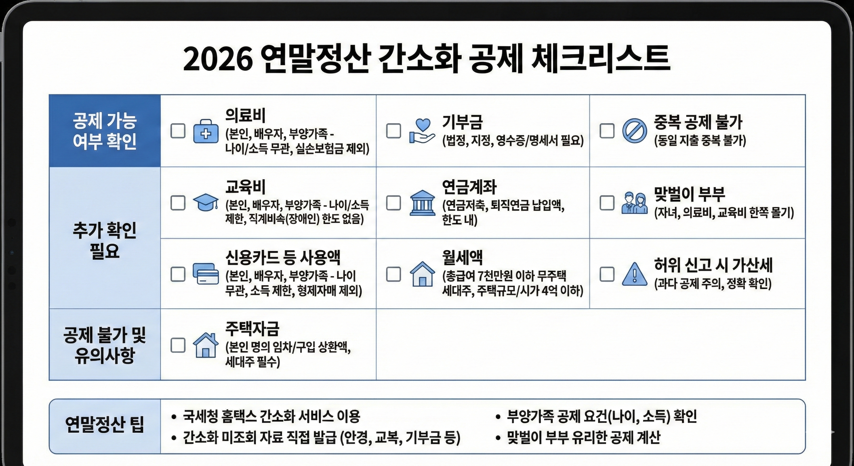2026 연말정산을 준비할 때 가장 많이 검색하는 키워드는 연말정산, 연말정산 간소화, 홈택스, 환급금, 소득공제, 세액공제입니다.