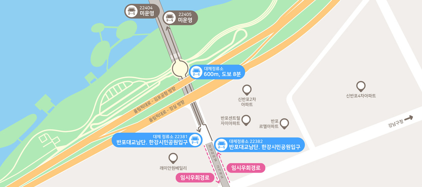 - 대중교통 이용은 필수! 잠수교 주변에는 별도의 주차 공간이 없어요. 지하철 4호선 동작역이나 9호선 신반포역에서 걸어오는 게 가장 편해요.
