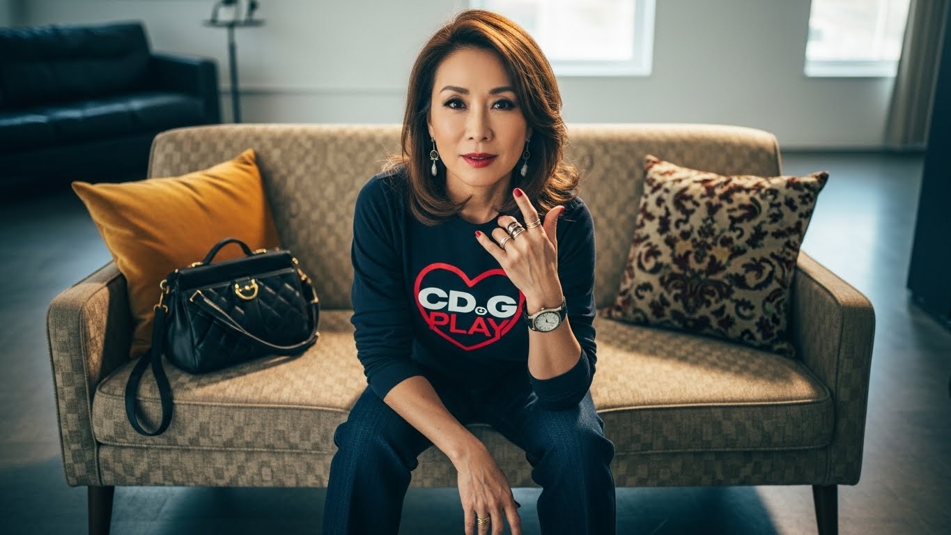 **주사이모**님을 상징하는 패션 아이템 중 하나는 바로 '꼼데가르송 플레이' 라인의 하트 로고 의류, 줄여서 **꼼데**입니다. 일상복 위에 꼼데 가디건이나 티셔츠를 믹스매치하는 그녀의 스타일링은 '친근하면서도 트렌디한' 이미지를 구축하는 데 큰 역할을 했죠.