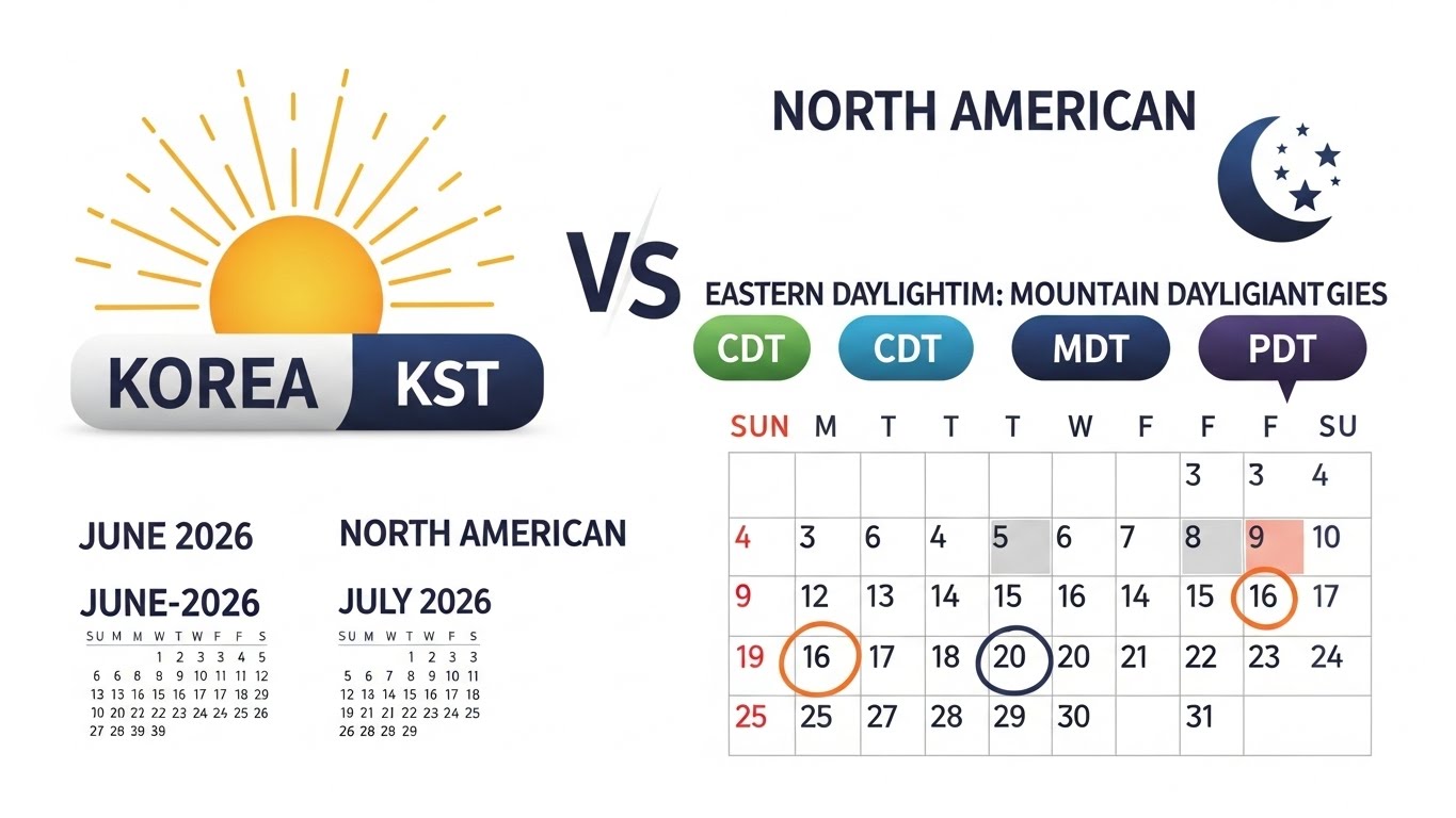 가장 중요한 건 '언제 보느냐'겠죠. 이번 대회는 미국, 캐나다, 멕시코 전역에서 열리며, 한국과는 약 13~16시간의 시차가 있습니다.